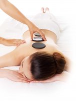 50℃から60℃のお湯で温めたストーン(石)と冷やしたコールドストーンを使用するストーンフェイシャル。